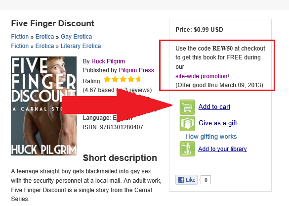 So go. Right now. Get thee to Smashwords and read a free book. If you like the work, give it a review. If you hate the work, let us know why. Sure, one star reviews make us sad, but no reviews makes us even sadder. Go! Be happy. Be horny.